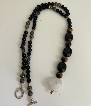 Flashy, mesmerizing stones that will boost your charisma? Tiger's Eye all the way. Calm, soothing patterns showing you the way to go? Moonstone is a favorite. Whatever the outfit, whatever the need, our necklaces will match.